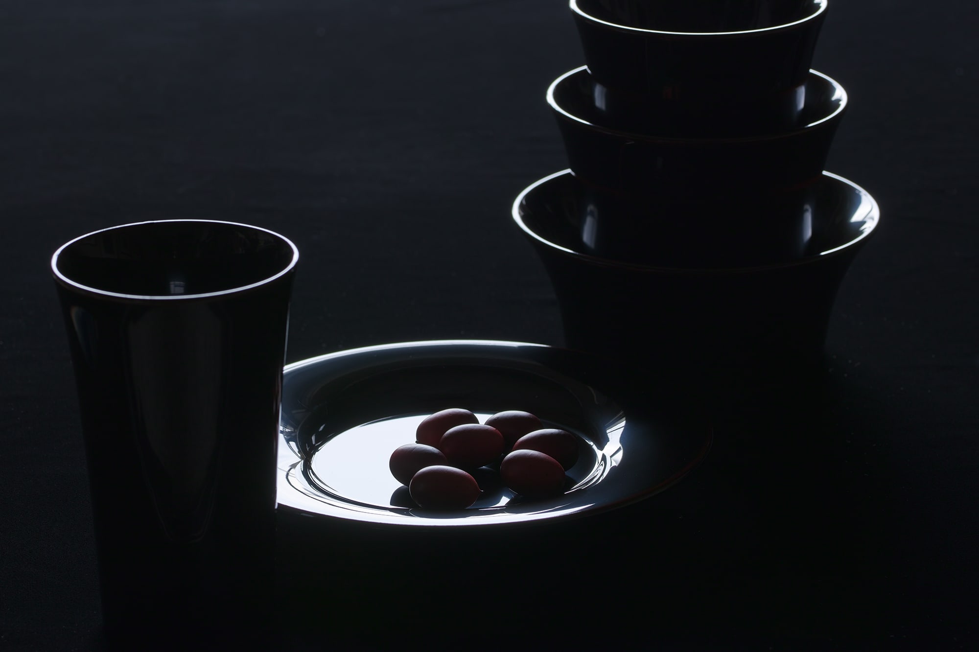黒いベルベットの布を背景にして漆器を撮影してみた。漆はとても難しい被写体の一つで、特に黒の漆器はその表情を捕らえることは並大抵ではない。そして、それに加えて今回はあえて早朝の弱い窓からの光を利用して黒の中の黒を表現してみた。これは、デジタルカメラの限界に挑戦するようなシチュエーションだ。この状況を普通に撮影してしまうと、黒のベルベットの背景と黒の漆器が分離せず、同化してしまい器の実態も感じられなくなってしまう。ところが、SFDモードでは通常とても写りにくい黒の表情がかすかに浮かび上がり背景と分離してきた。これは、SFDモードで撮影するとダイナミックレンジがとても広くなり、潰れてしまいそうな黒の質感、そして、光を強く反射している部分は通常飛んでしまいそうだが、その白の質感を救い出してくれたからだ。それに加えてノイズも感じられずに黒の世界が表現出来た。