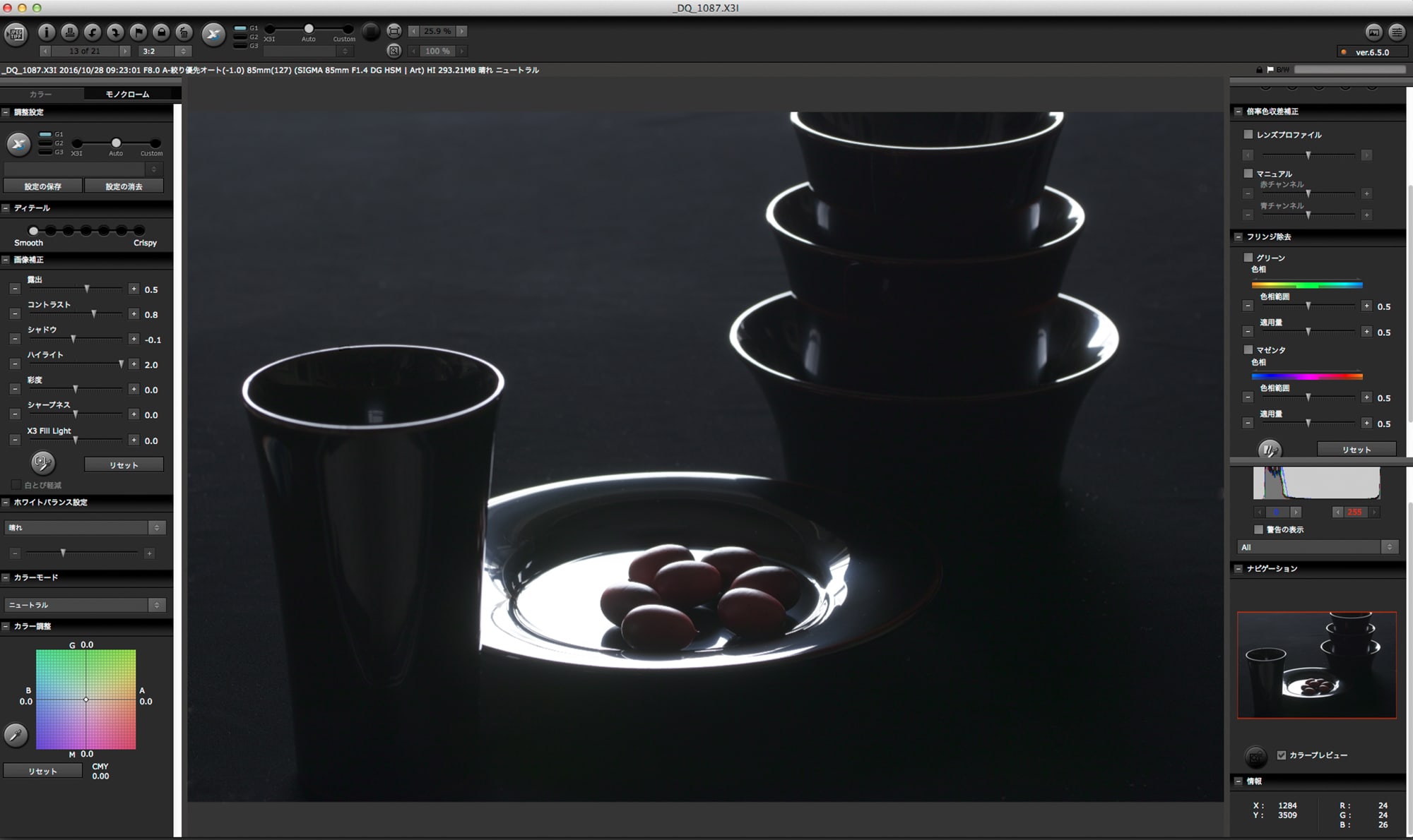 SFDモードで撮影した場合、現像したデータをあくまでも素材として扱い、後からもう一度、どこまでシャドウが必要か、ハイライトをどこまで白くすれば良いかなどを考えて画像調整をする方が完成度の高い写真を作る事ができる。