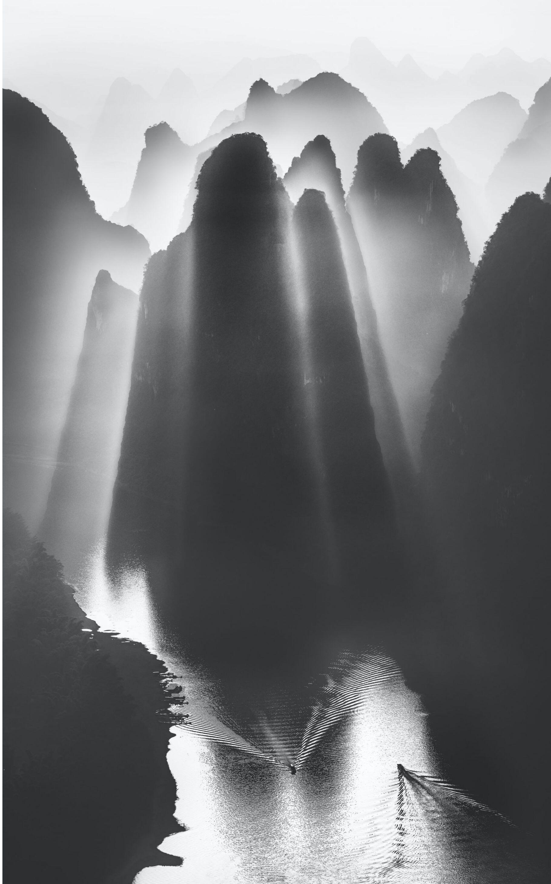 私は子供の頃、有名な中国の伝統画家、唐道昌のもとで絵画を学ぶ幸運に恵まれました。私は彼から古典芸術の真髄を学びました。この経験が、私の心の奥深くに、中国伝統絵画の美意識の種を植え付けました。風景写真家となって、アイスランドのまばゆいオーロラや、ニュージーランドの輝く星空、インドネシアの壮大な火山、グリーンランドの美しい氷河、オーストラリアの怒涛逆巻く海、モロッコの茫漠たるサハラ砂漠、そして雄大なアメリカ西部など、世界中で撮影してきましたが、それでも故郷の桂林の美しい風景は私の心を強く捉え続けているのです。