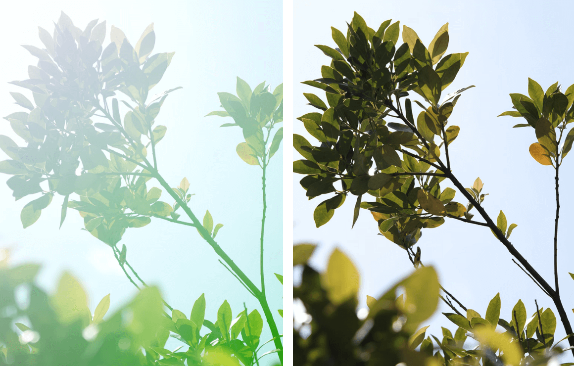 レンズ設計の初期段階からフレア、ゴーストに対する対策を徹底し、逆光のような強い入射光に対しても影響を受けにくい設計を行っています。スーパーマルチレイヤーコートの採用により、フレア、ゴーストの発生を軽減し、逆光時の撮影においてもコントラストの高い描写を実現。付属の花形フードの装着により、レンズの描写に悪影響を与える有害光を効果的にカットし、内面反射の発生を防ぎます。 -