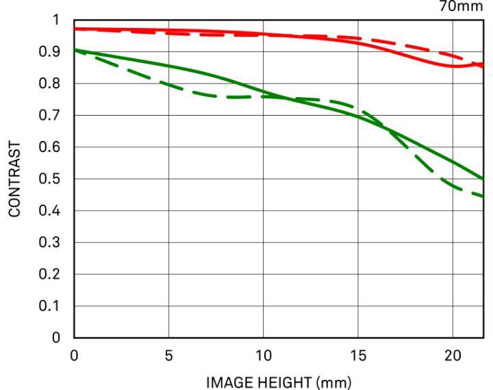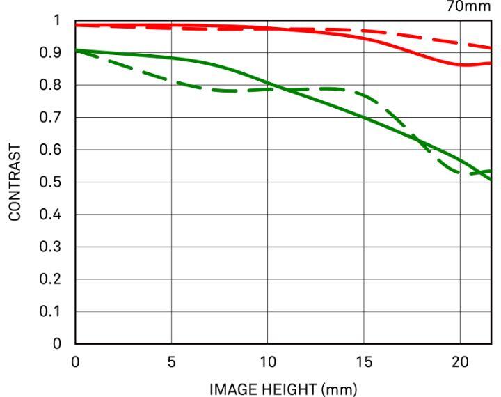 上記MTF性能曲線図は絞り開放時のデータです。