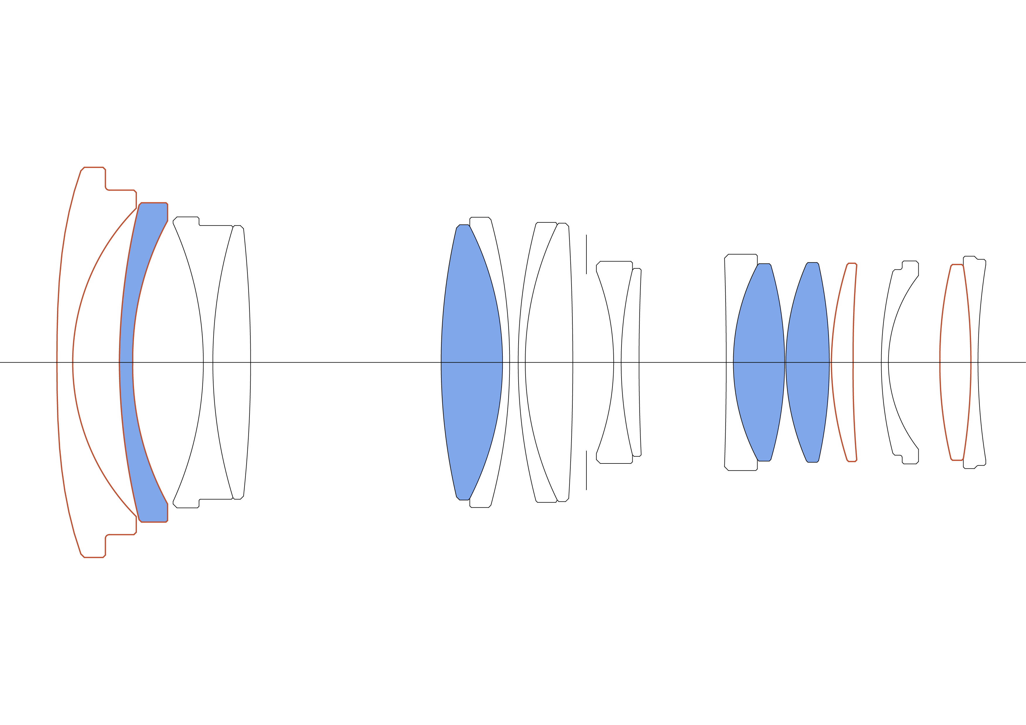 11群17枚(SLDガラス4枚、非球面レンズ4枚)