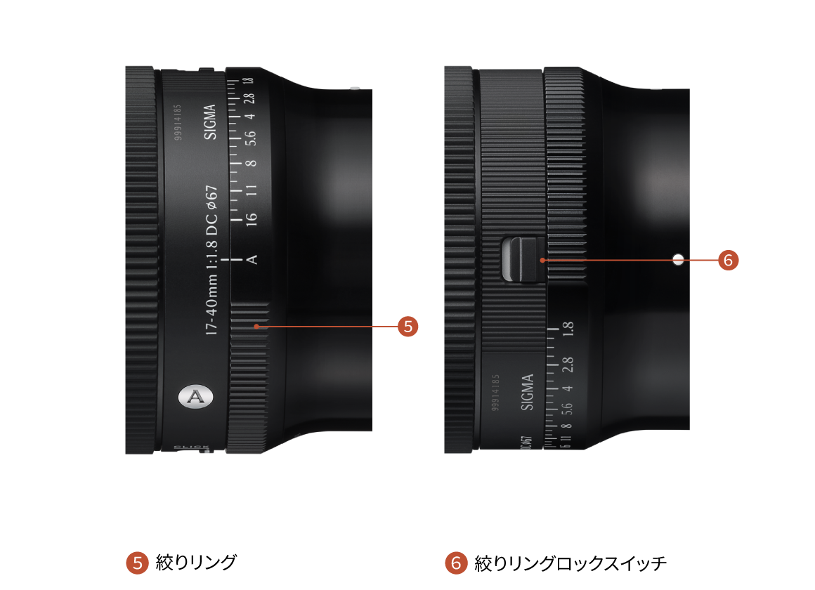 ※1 キヤノンRFマウント用では絞りリングの代わりにコントロールリングを搭載します。絞りリングクリックスイッチ・ロックスイッチは非搭載です。