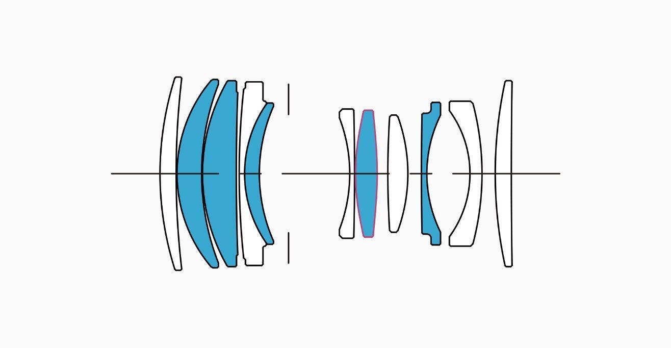 最新の光学技術を基盤に構成されたSLDガラス5枚を含むレンズ群は、カメラ側では補正できない軸上色収差を中心に抑制。高い解像感と色にじみのないクリアな画質を実現しています。同時に、ミラーレスシステムの利点であるカメラ側の光学補正機能も活用することで、光学系でしか対応できない収差の補正に集中することができ、描写性能の向上とレンズサイズの小型軽量化を可能にしました。