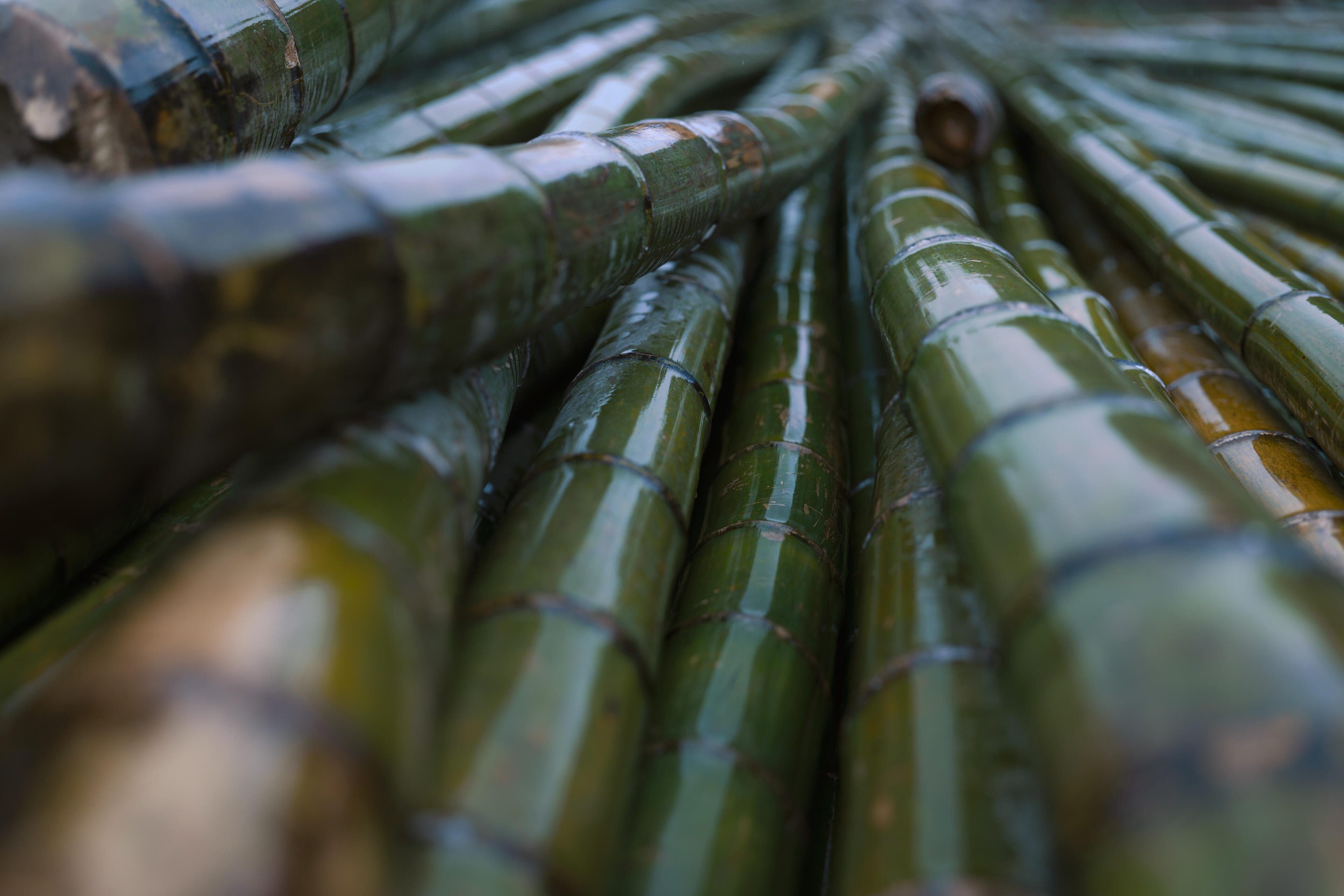 雨の日の室内という光量の少ない環境で、私は糸で竹を繋ぎ合わせる工程を連写で撮影しました。