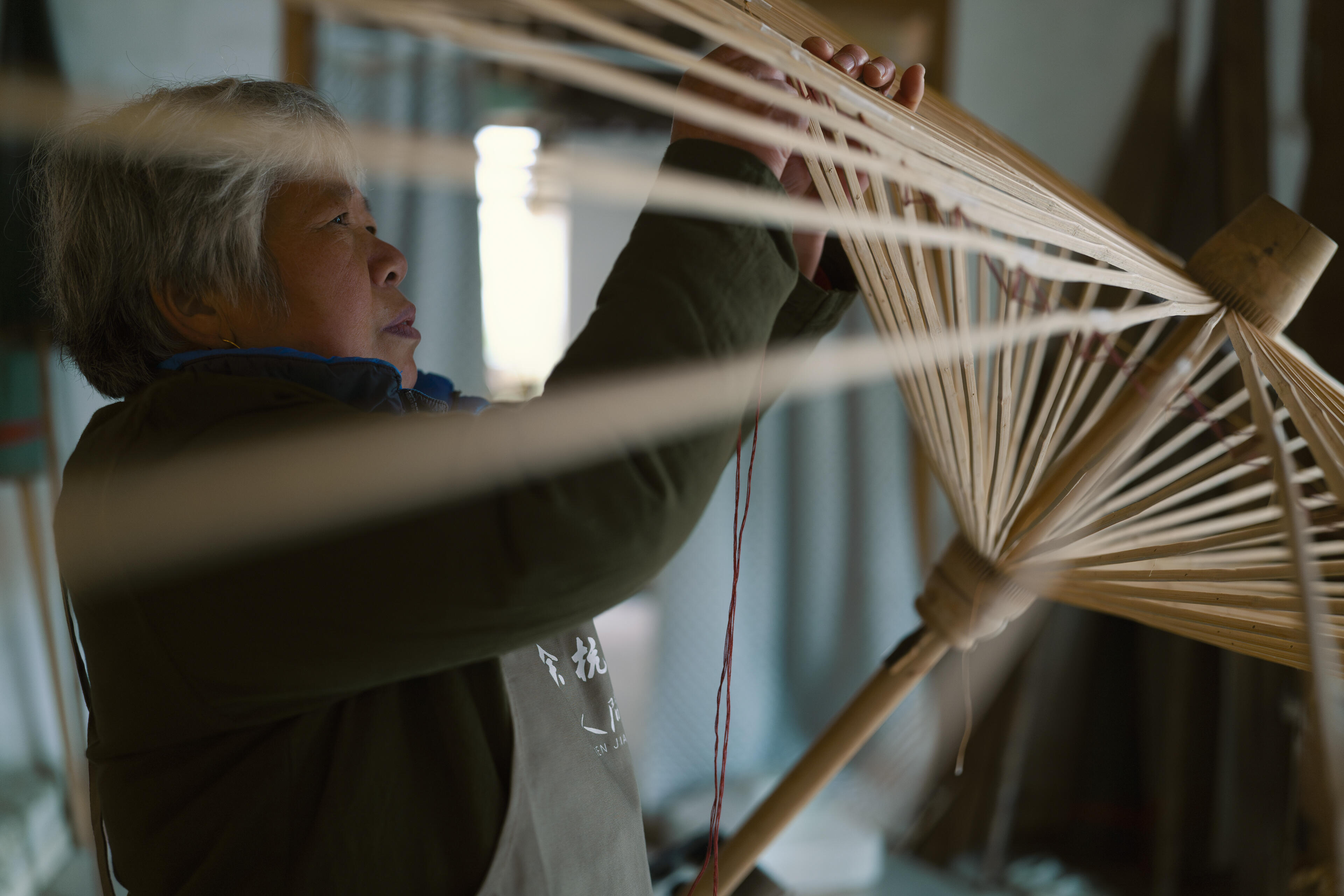 今回の撮影では、このレンズを携えて余杭の紙傘工房を訪れ、伝統的な油紙傘がつくられる全ての工程を記録しました。撮影機材と被写体との対話を通じ、私は伝統工芸と現代の光学技術のそれぞれが持つ表現力を自ら体感したいと考えたのです。