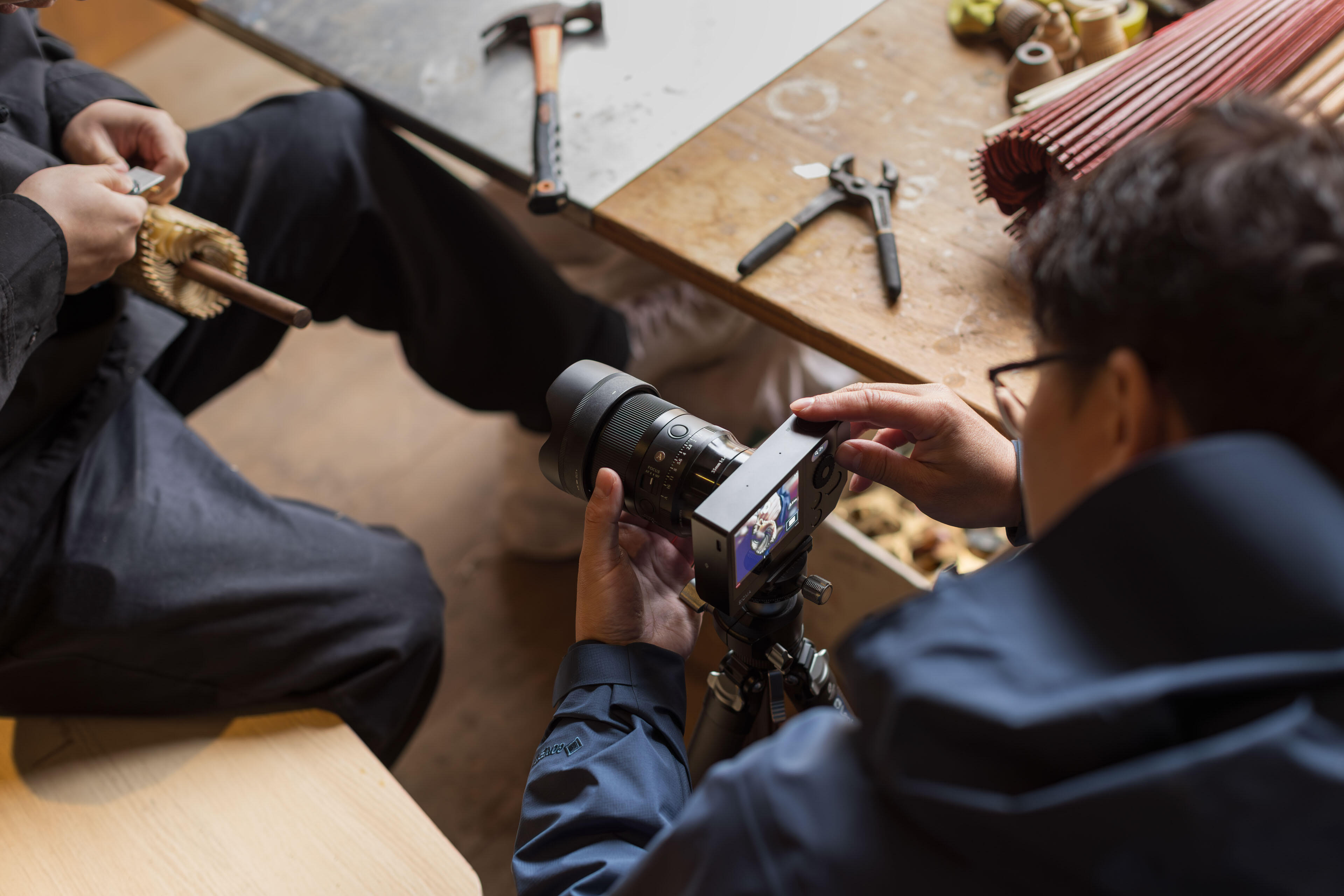 画角が広すぎると画面が散漫になりやすく、逆に狭すぎると、傘の製造工程の全体像を伝えきれません。その点、Sigma 35mm F1.4 DG II | Artの焦点距離は完璧です。