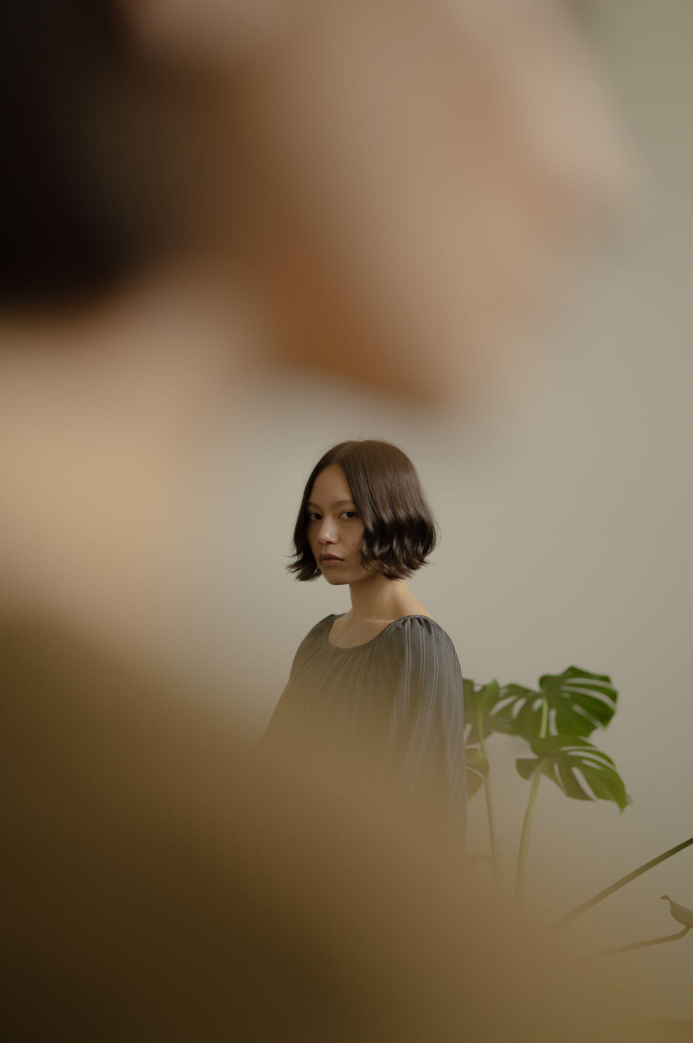 被写体は2人のモデル(イオナ・キャサリンとカイヤ・ノーテボーム)で、それぞれのモデルの個性を捉えながら、2人の位置関係を利用して前景と背景の面白い効果を生み出し、なおかつ絞り開放での撮影による視覚的な心地良さも追求しました。自然光と常にコントロールした人工照明とをミックスすることで、同じ環境条件の中で両方のシチュエーションを試しました。イオナは今回、スタイリングとアートディレクションも担当し、時には背景と同じテキスタイルの衣装を用いながら、統一感のあるビジュアルを演出してくれました。絞り開放での撮影は、そんな統一された被写体と背景との間にコントラストを生み出します。