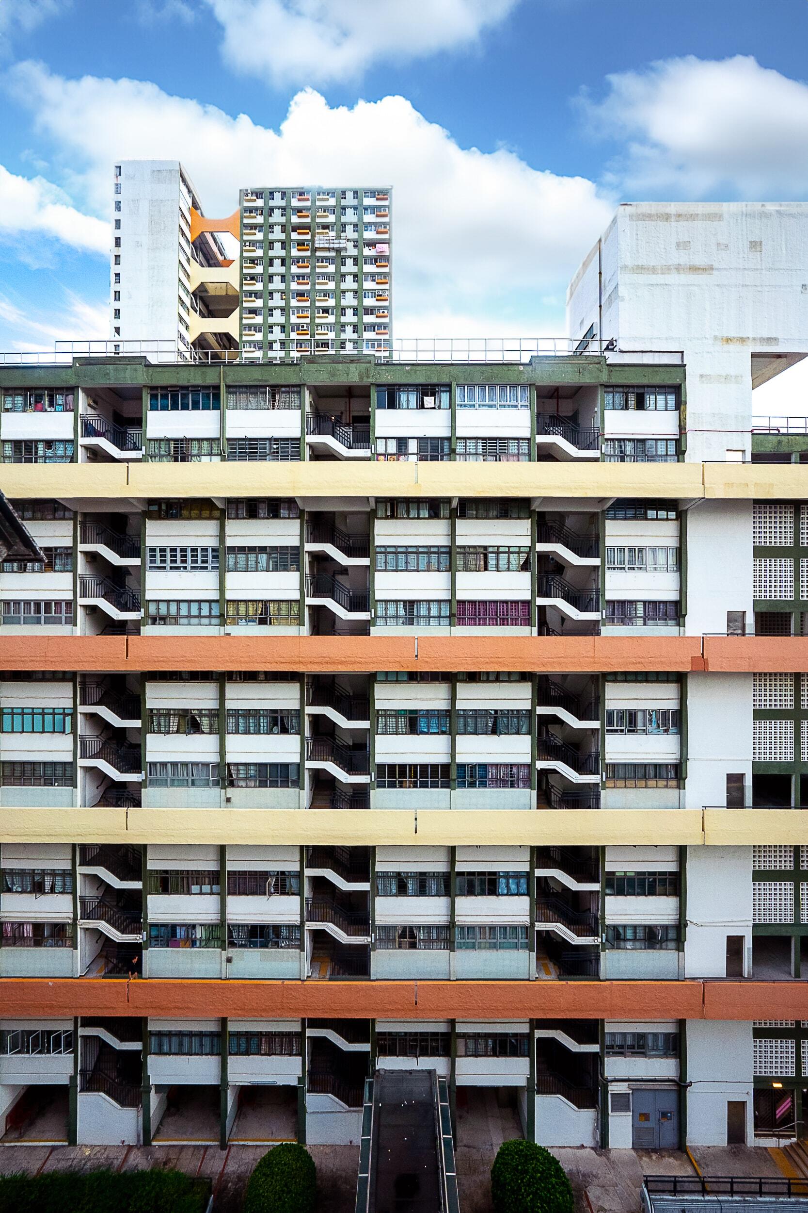 私は、自分が満ち足りた家庭に生まれ育ったことをいつも感謝しています。私が子供の頃から、私たち家族は毎週のように祖父母の家に集まっていました。それは私の子供時代を豊かなものにしてくれました。これらの写真は祖父母が住む団地で撮影したものです。家族団欒の楽しい思い出や、大好きな香港の記憶がここにはあります。「ツインタワー」の建築デザインは香港の公営住宅の特徴的な構造で、香港映画にもよく登場しています。私は祖父母の家だけでなく、その近所の団地「祖堯邨(Cho Yiu Chuen)」もよく訪れていました。ここにもツインタワーがたくさん見られます。こうした建築的特徴は、ここ30年ほどの間に新たに建設された公営住宅ではもう見られなくなっています。これはとても寂しいことです。コミュニティを訪れて写真を撮ると、古き良き時代が懐かしく思えるようになります。こうした記憶も、私にとってはインスピレーションの源になっています。
