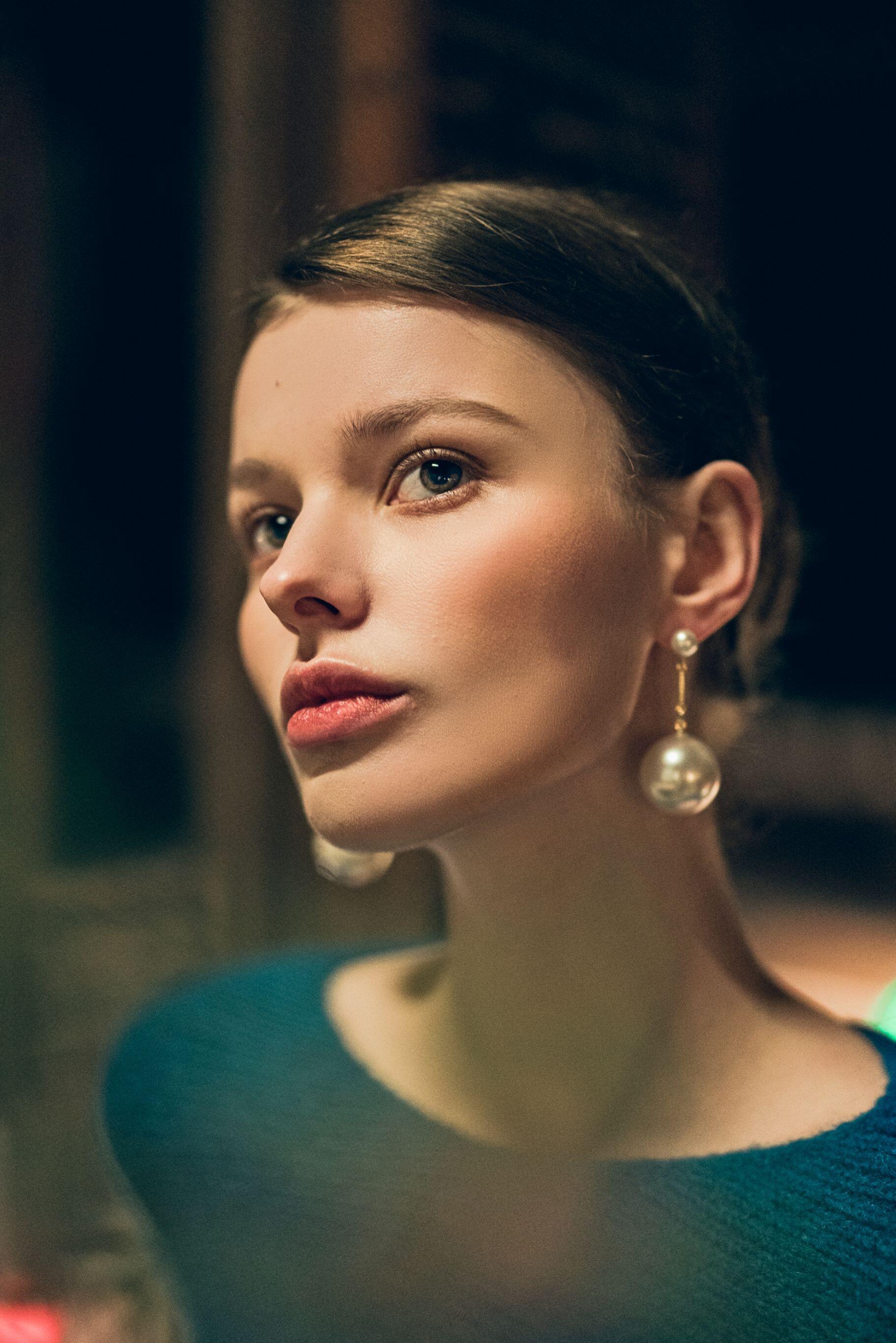 SIGMA 50mm F1.2 DG DN | ArtのF1.2という明るさは、クリエイティブな自由度を格段に高めてくれます。その卓越した明るさのおかげで、光量の少ない撮影環境でも難なく扱えますし、背景をソフトかつアーティスティックにぼかした表現も可能です。要素の多い背景であっても、被写体をくっきりと目立たせるような作品を生み出せます。モデルの目や顔にピントを合わせる場合には、レンズの明るさを生かして被写体の奥深くにまで切り込み、繊細な表情や感情をこまやかに捉えることで、ドラマチックで謎めいた作品になります。私の作品をご覧になればおわかりいただけると思いますが、私は被写体の手前にエレメントを配置して撮影するのが好きで、ランプや柱、鉢植えの植物や花束などを前景に置くことがよくあります。私の撮影では、モデルに極端な体の動きや表情をさせることはありません。レンズの明るさを生かしつつ、構図の力でユニークな視覚効果を生み出し、作品に豊かな物語性や深みを持たせることが重要なのです。