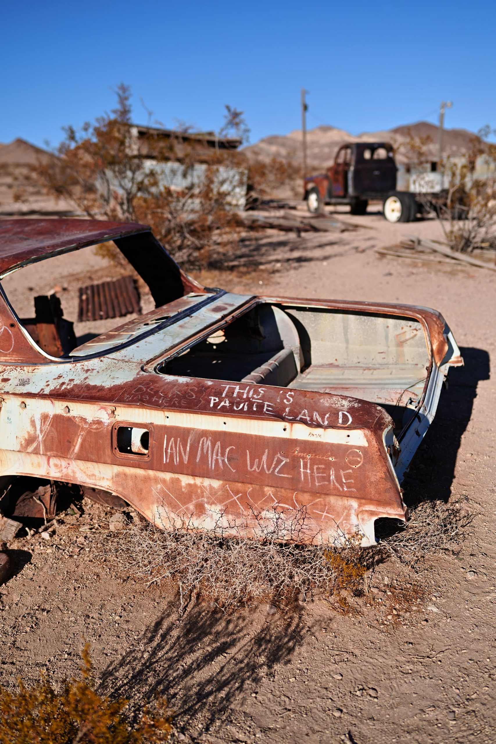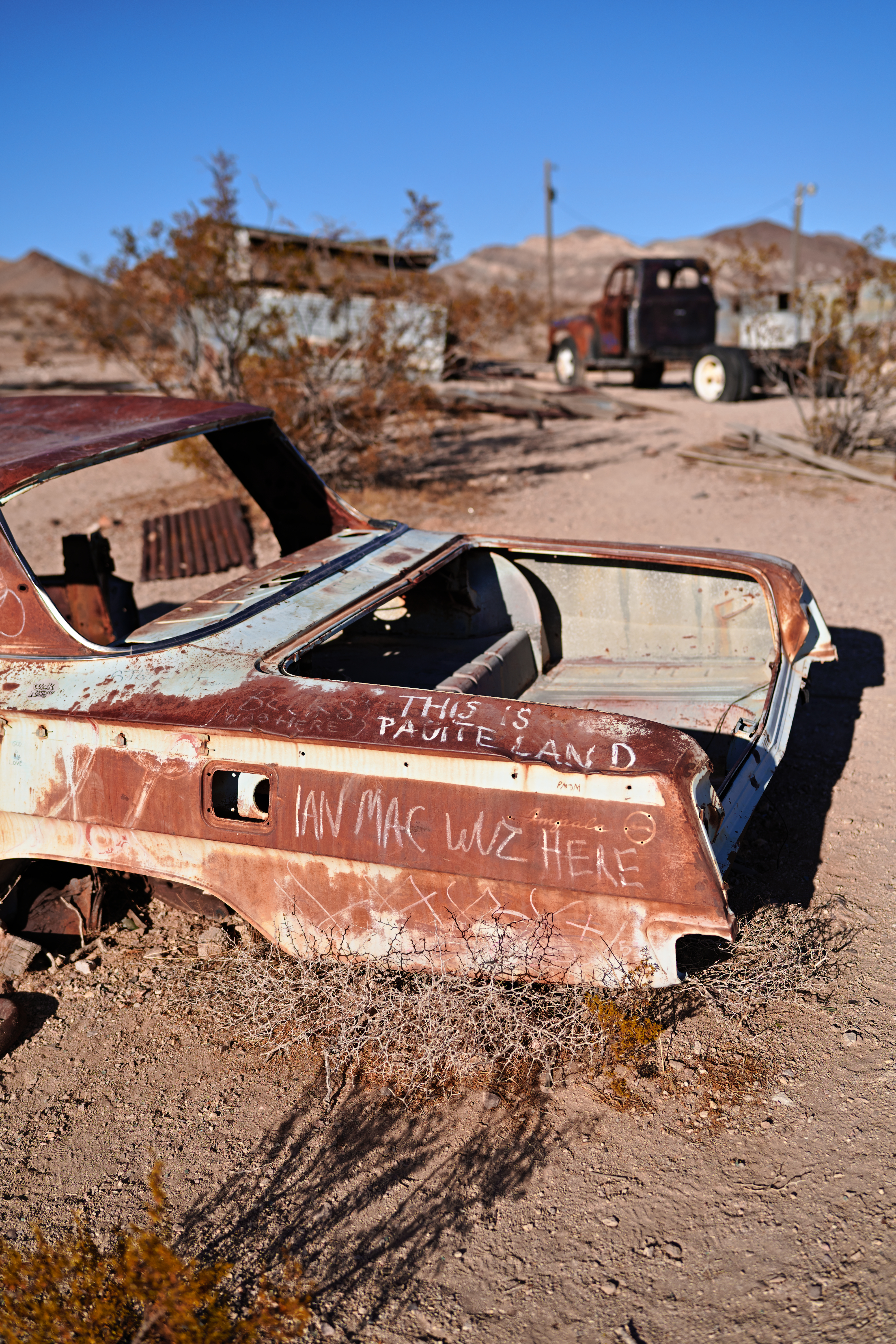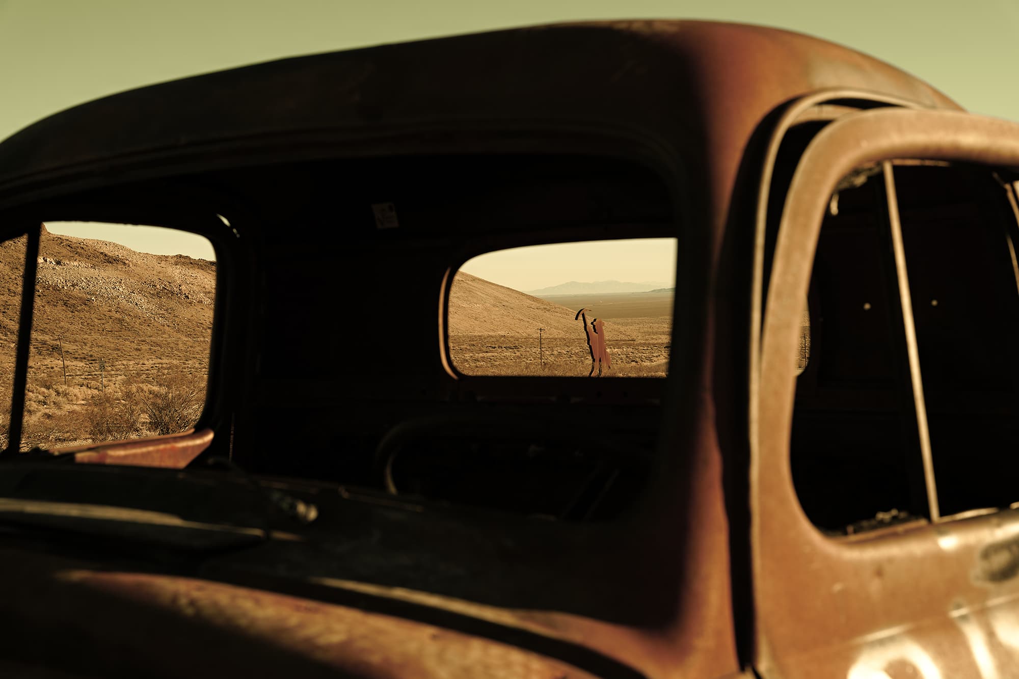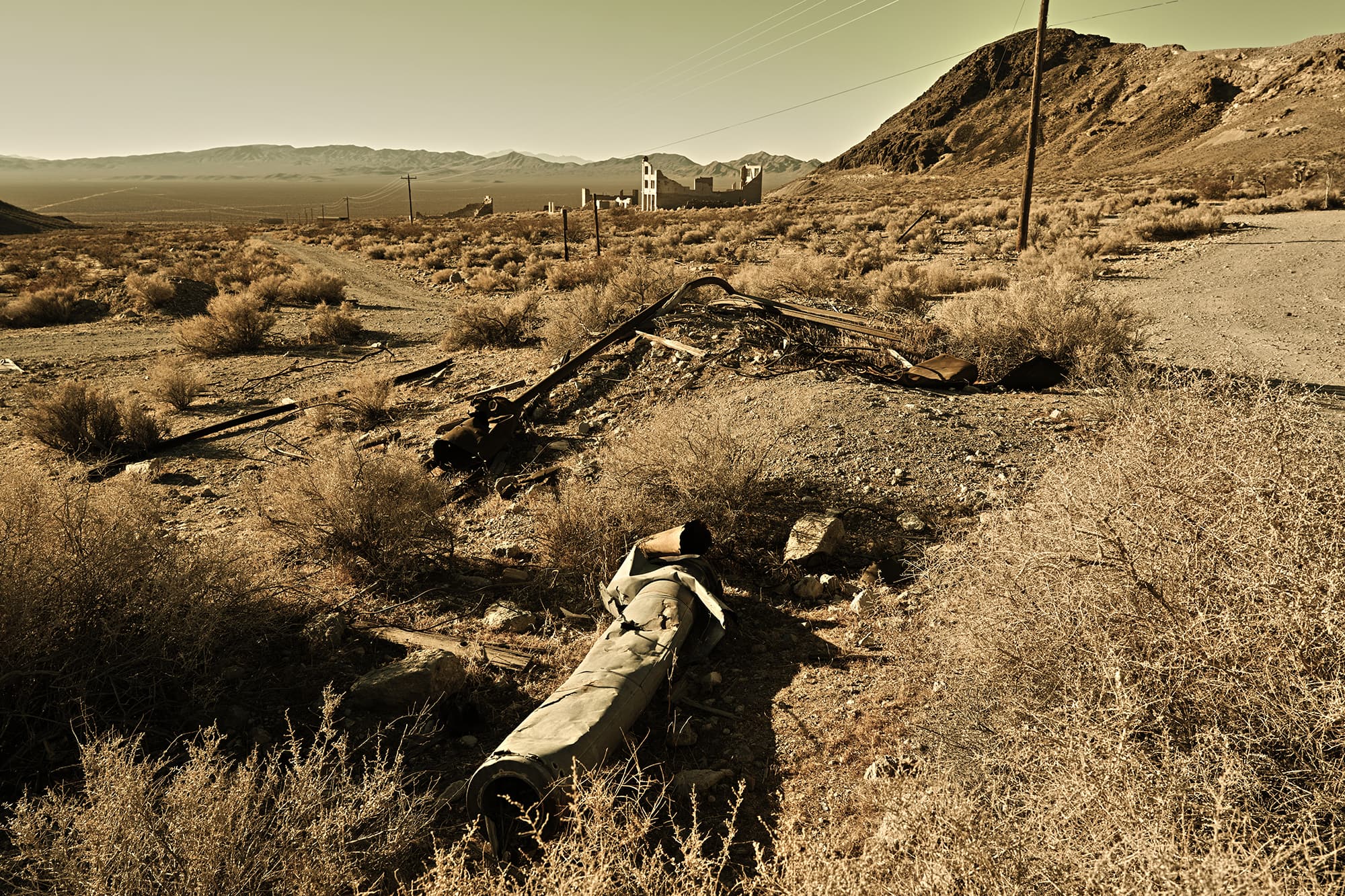冷え込んだ朝、「最後の晩餐」と題された等身大の白い彫刻は朝陽を浴び、その存在感を増していた。ネバダ州のアマゴサバレー北端に位置するゴーストタウン、ライオライト(Rhyolite)の南にあるGoldwell Open Air Museumには、様々な彫刻が展示されている。