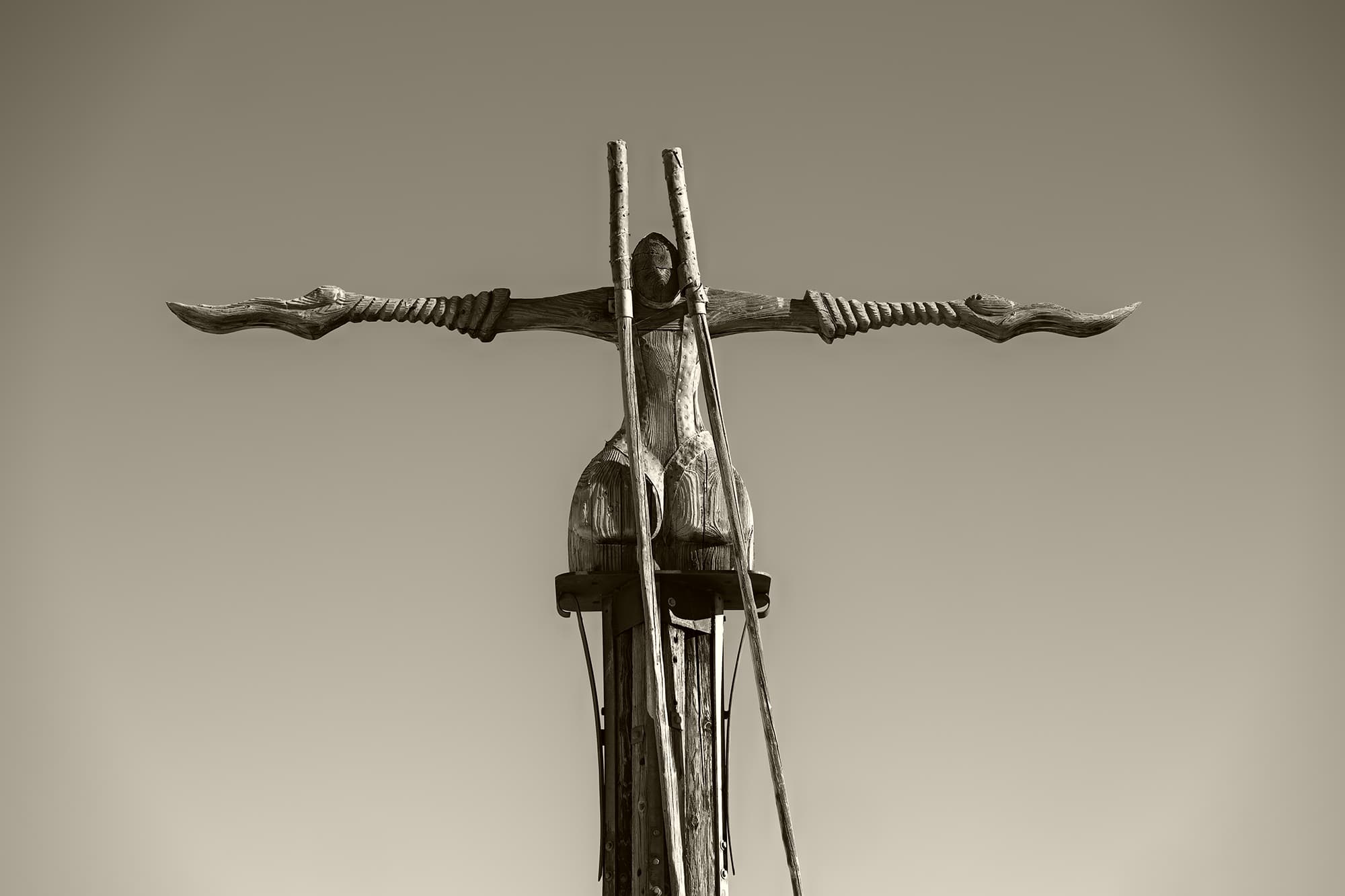 「最後の晩餐」と同じ作者、Charles Albert Szukalskの白い彫刻Ghost Rider(1984)が、朝陽の色に染まっていた。大口径広角レンズらしい美しいボケ味を活かした写真が撮れた。